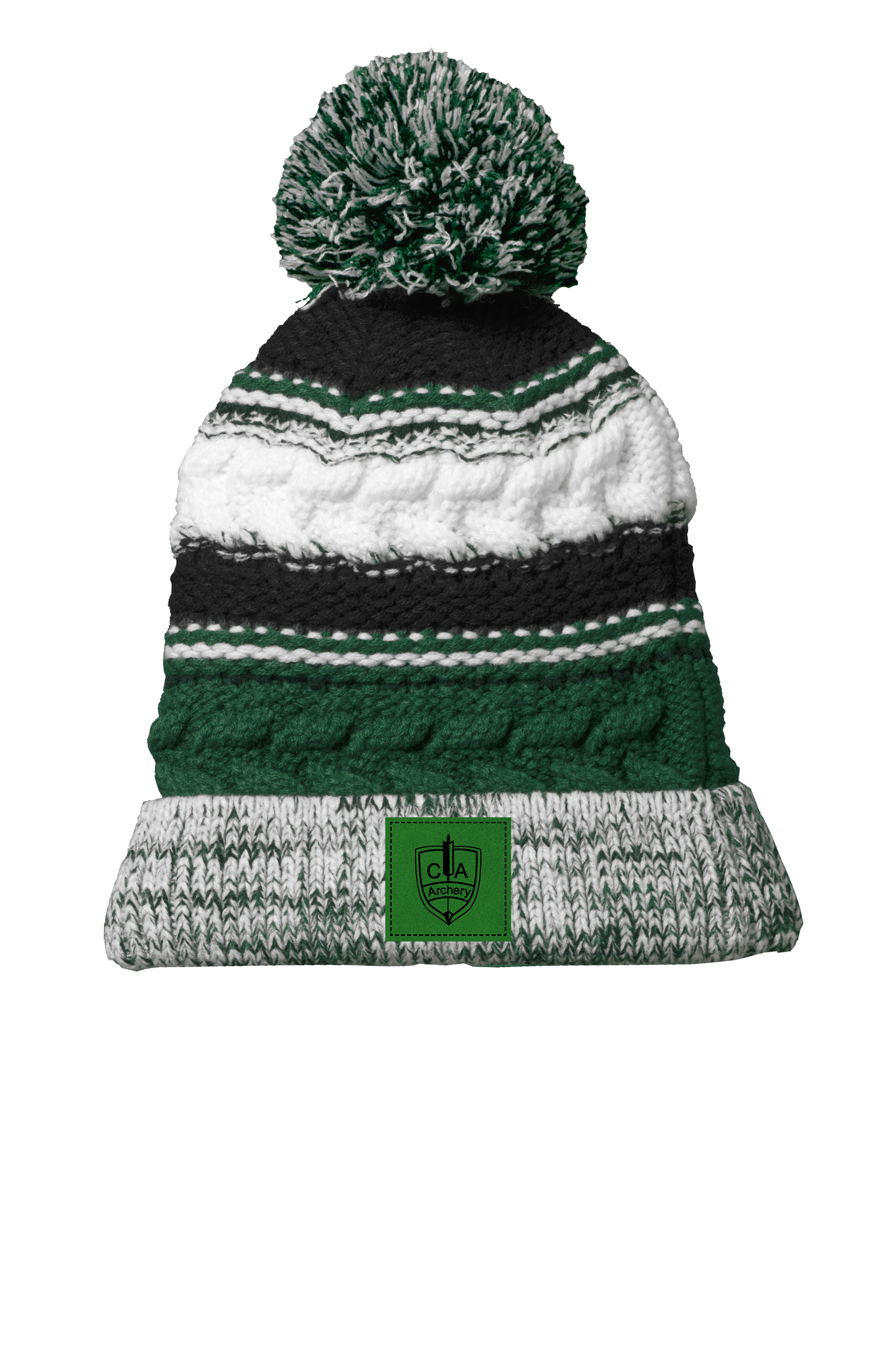 With three team colors and a large pom pom, this chunky-knit beanie will help keep you warm in the stands.
